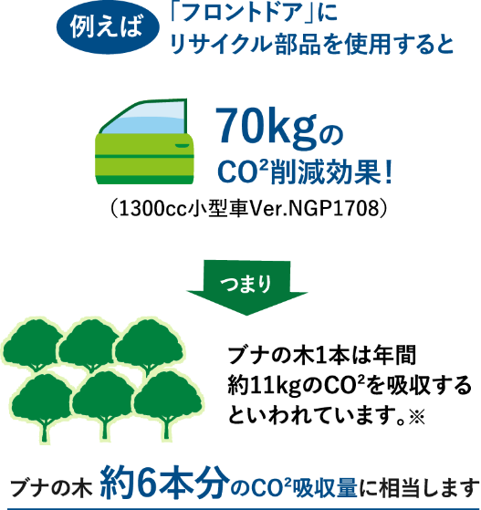 使用済み自動車からリサイクル部品として再利用可能な部品を生産。生産工程前に機能・品質等をチェックし「リサイクルパーツ」として商品化する。